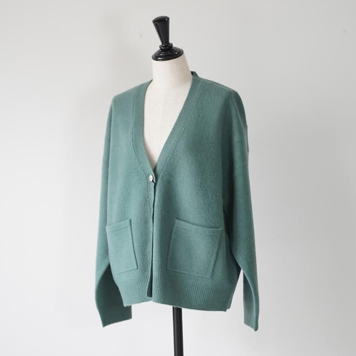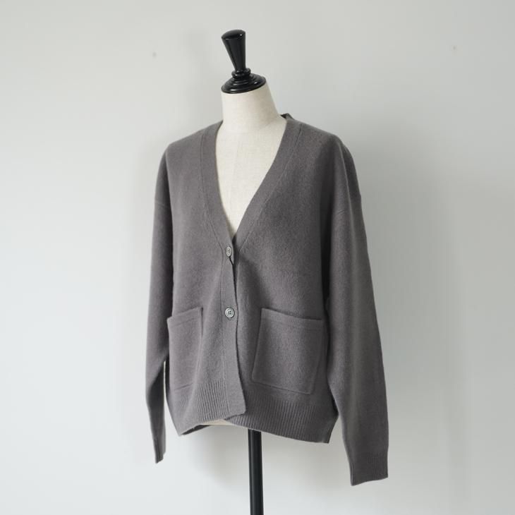 程よくボックスシルエットのVネックウールカーディガン。