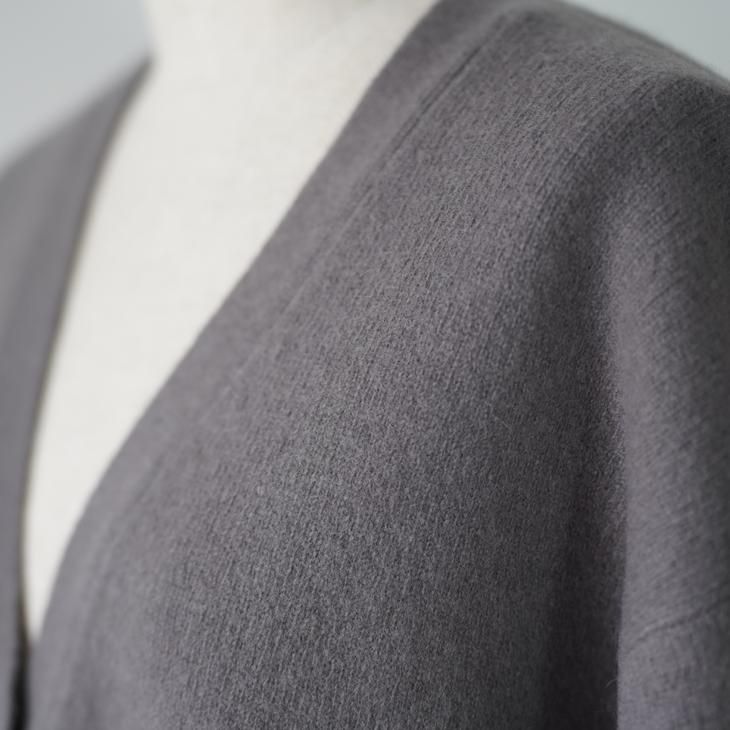 19.5MICの紡毛では珍しい非常に繊維の細い糸を使用しているので、チクチクしにくいです。糸の中に空気が入るような紡績をしているため、非常に軽くふっくらとした仕上がりになっています。